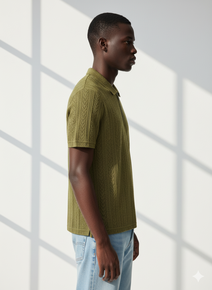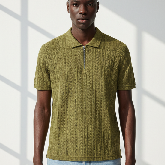 Super soft and ultra comfortable regular size polo with Classic polo collar with metal half-zip closure.