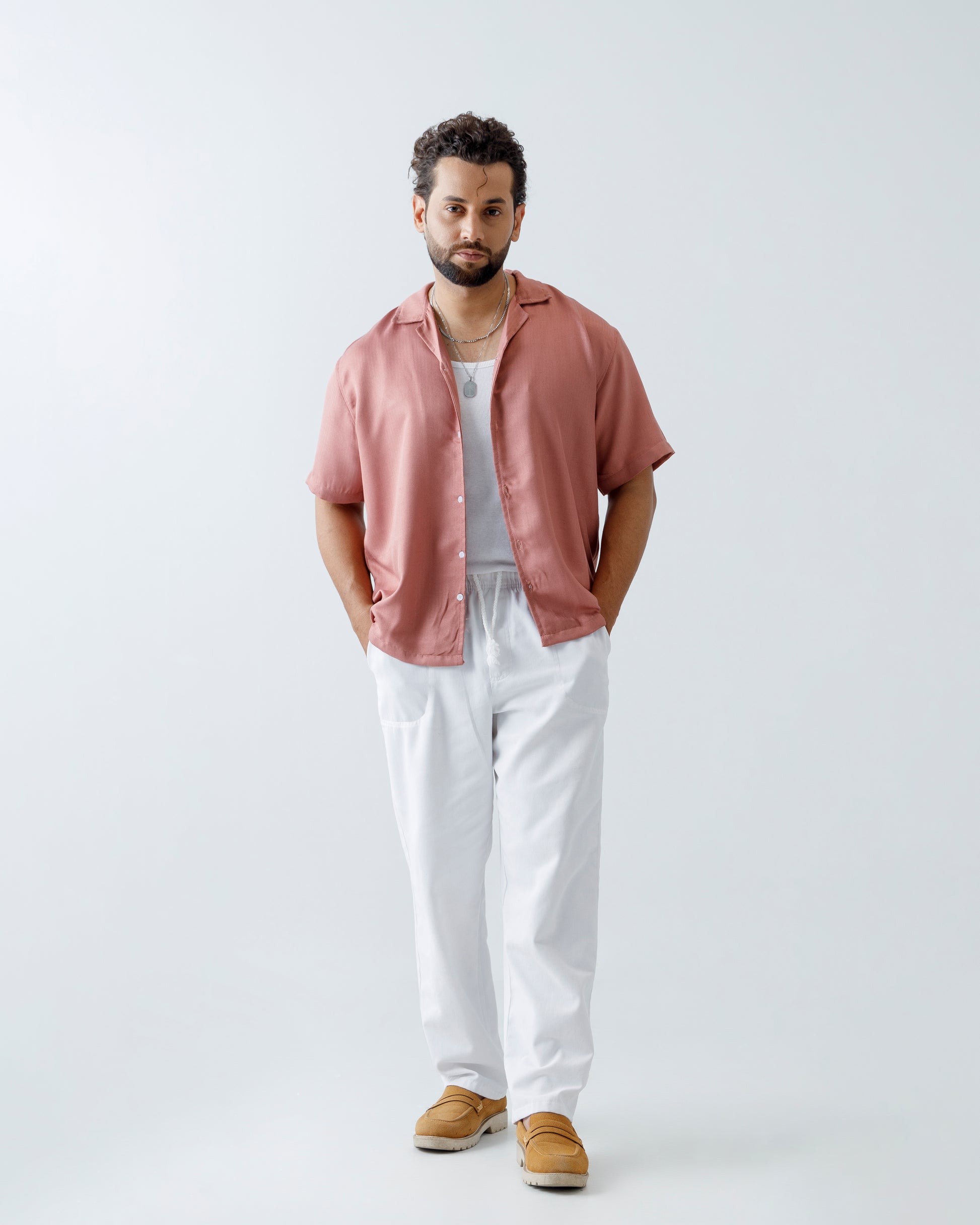 Step into summer with ease and attitude in the Dusty Rose shirt — a relaxed essential for the modern streetwear enthusiast. A luxuriously soft cotton-linen blend, this shirt features a subtle herringbone texture that adds quiet depth and dimension to its rich black tone. The relaxed drop-shoulder cut and half sleeves deliver effortless comfort. making it the perfect go-to for warm-weather layering or standalone statements. Available now on SNAZZ!