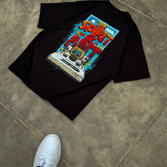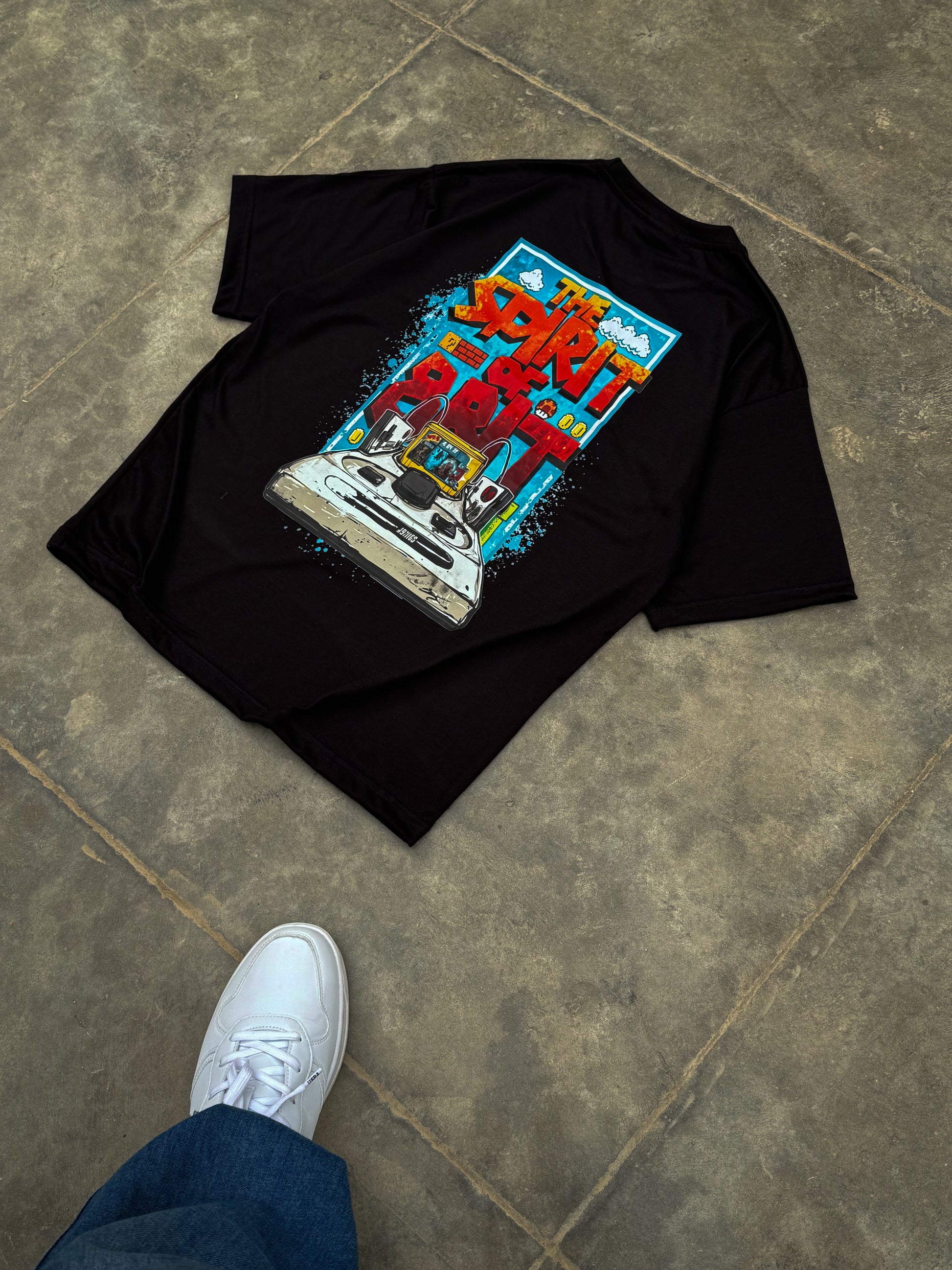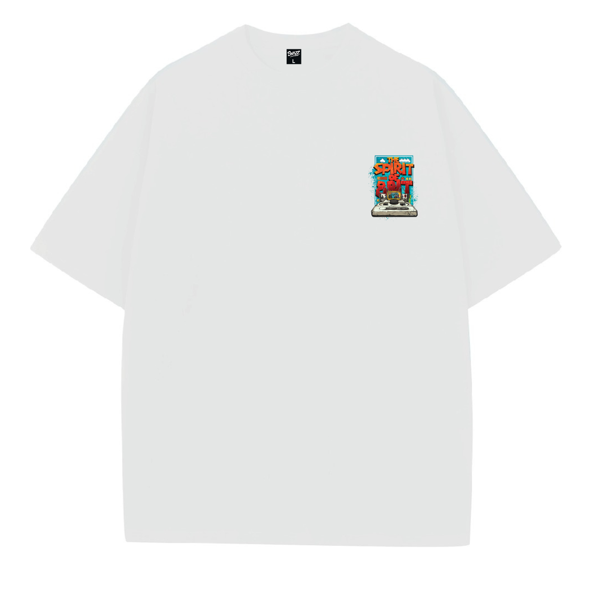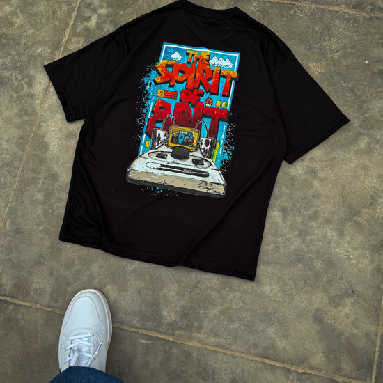 Step into nostalgia with "The Spirit "Tee, a tribute to the golden era of retro gaming. Featuring a bold and vibrant graphic of a classic console setup and pixel-perfect typography, this design brings old-school energy to modern streetwear.